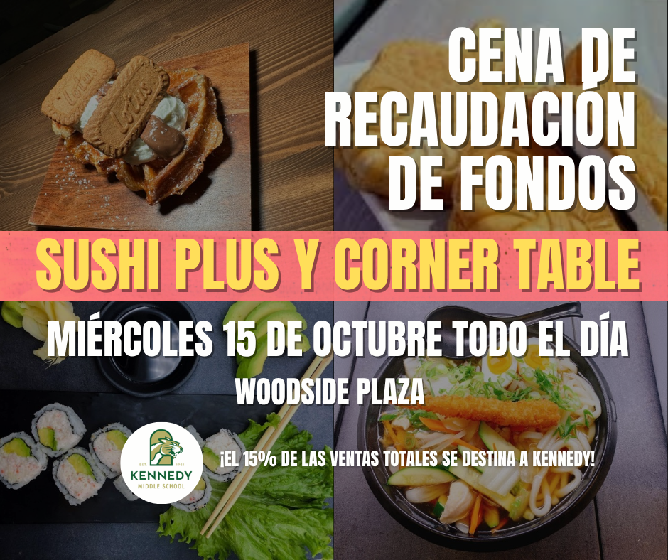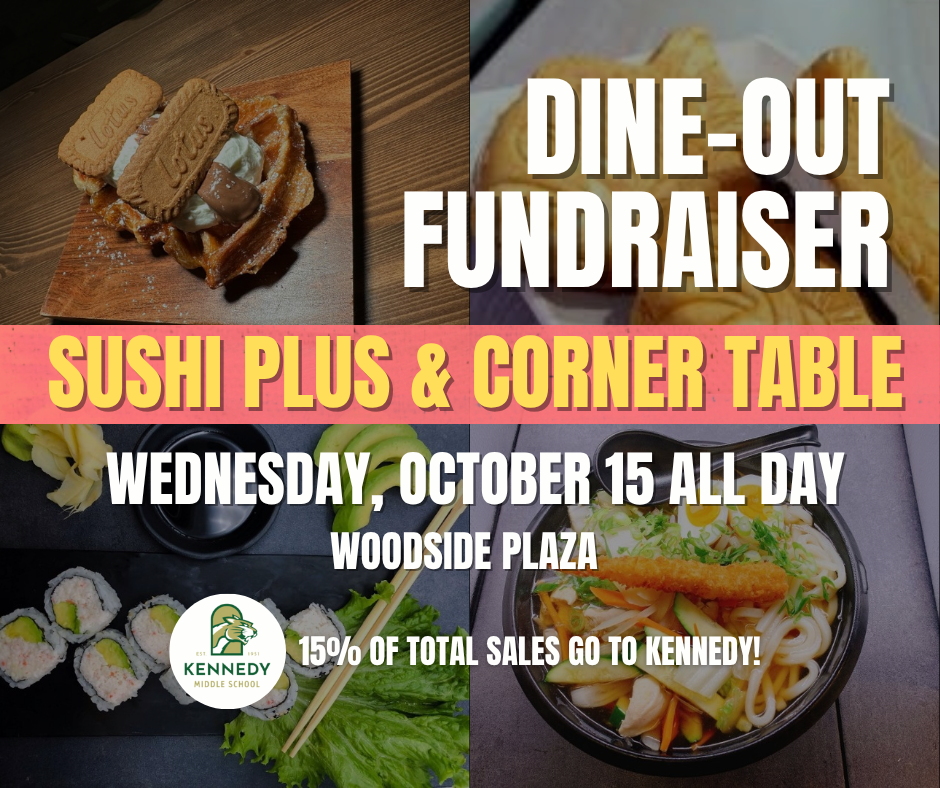 Wed 10/15: Dine Out at Sushi Plus & Corner Table ALL DAY!