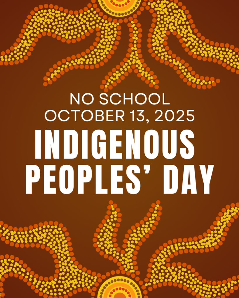 Mon 10/13: NO SCHOOL for Indigenous People’s Day